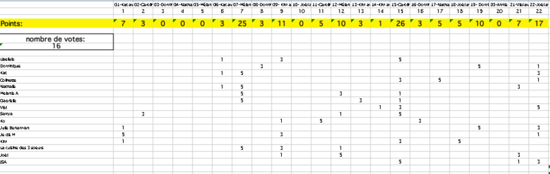 Mes votes: 4, 14 et 12
